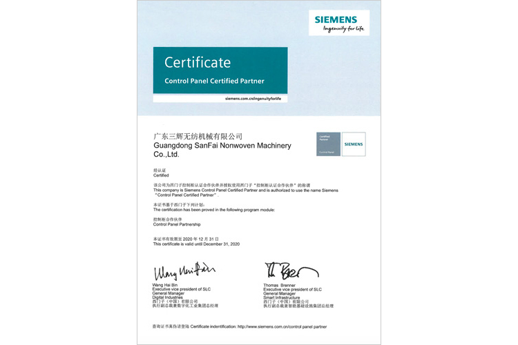 Siemens Control Panel Certificated Partner Certificate